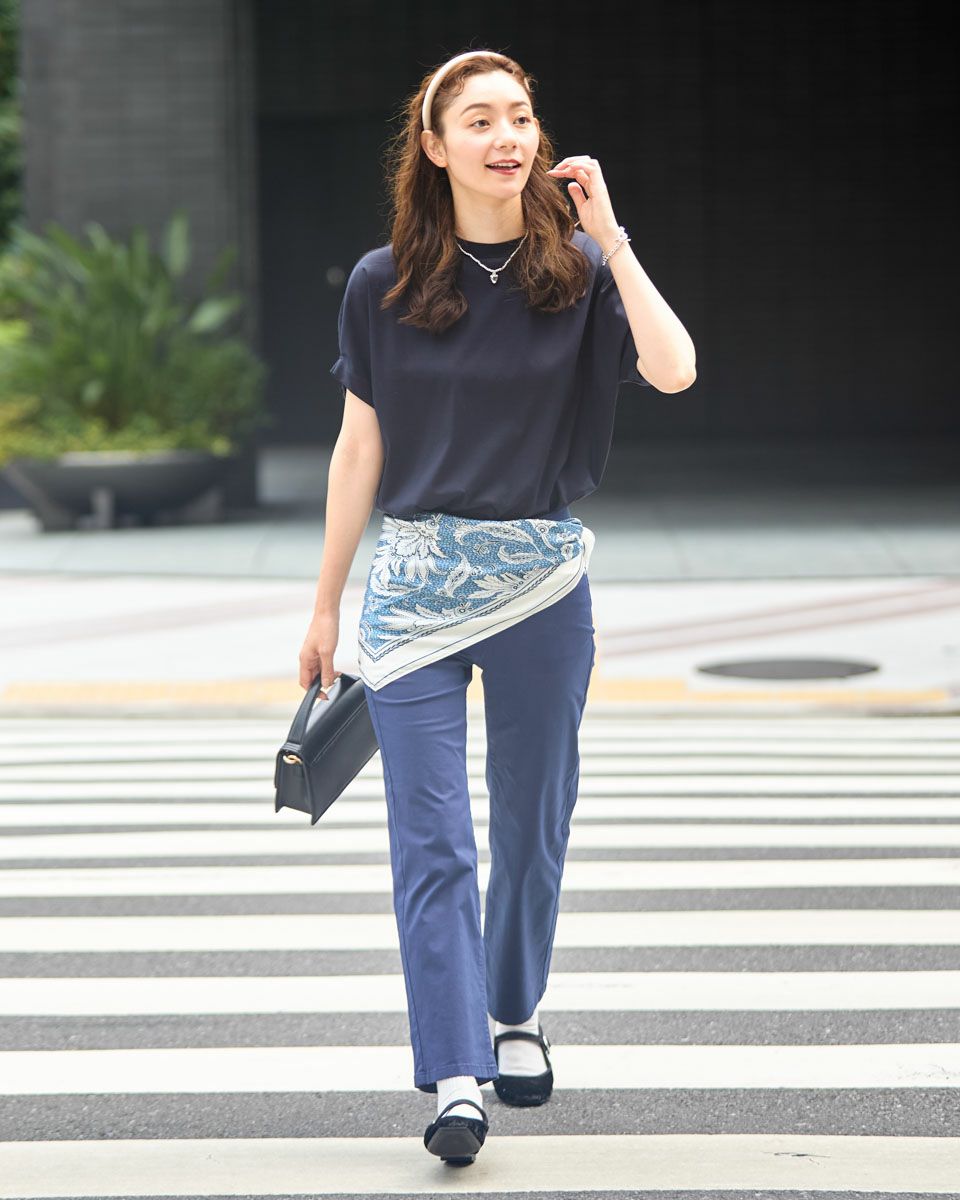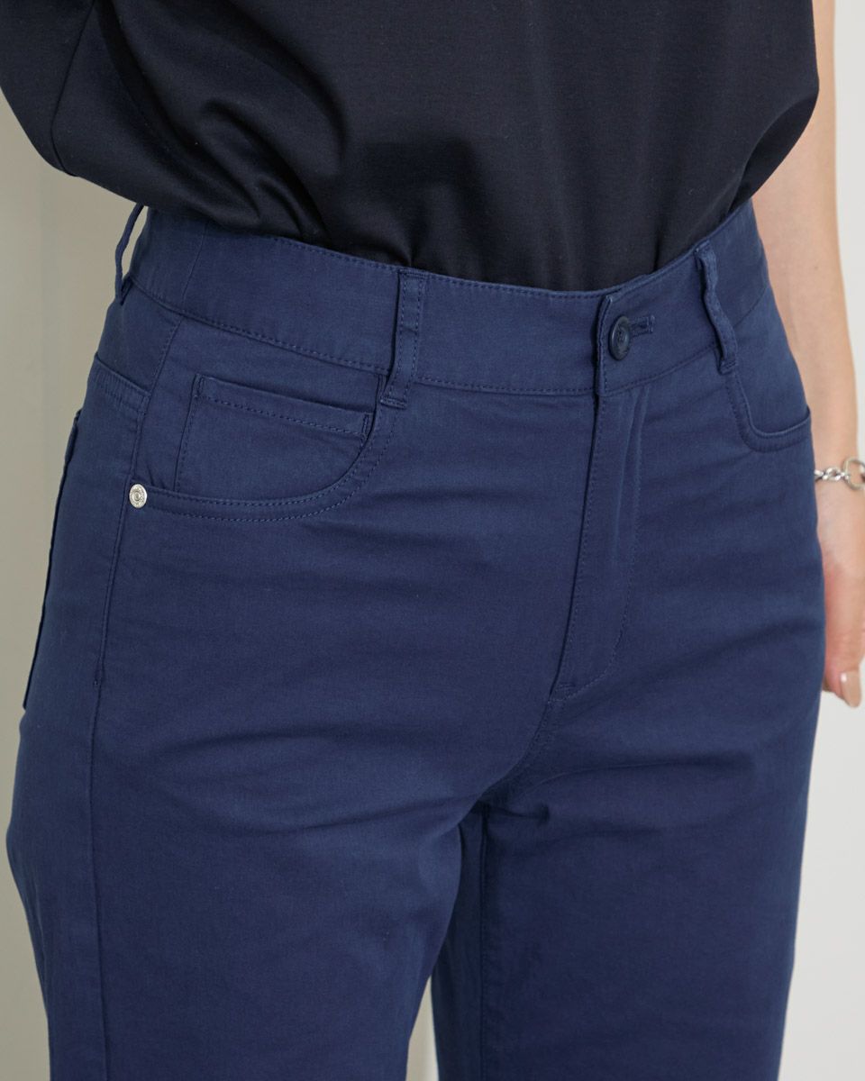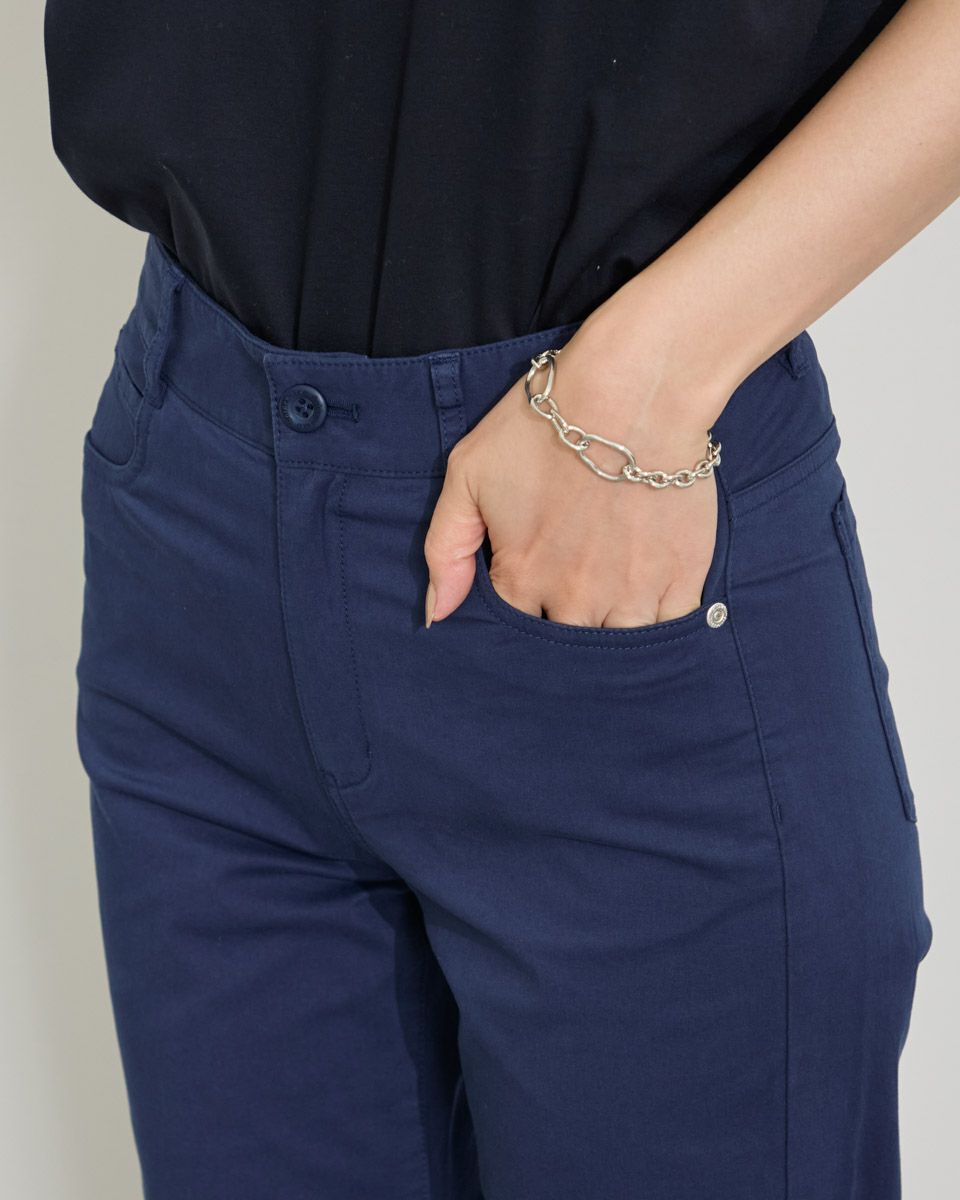 綿ストレッチのツイルを使用したパンツです。シルエットはベーシックなストレートラインで膝から裾にかけてほぼ真っ直ぐで、股上はやや深めです。 モデル身長: 171 cm 着用サイズ: M サイズ Golden Bear Ladies' ボトムス (Ladies') 【着用アイテム】467QA405 リブ使いボーダーTシャツ 467QB610 カーディガン 468QB461 ハイネックプルオーバー