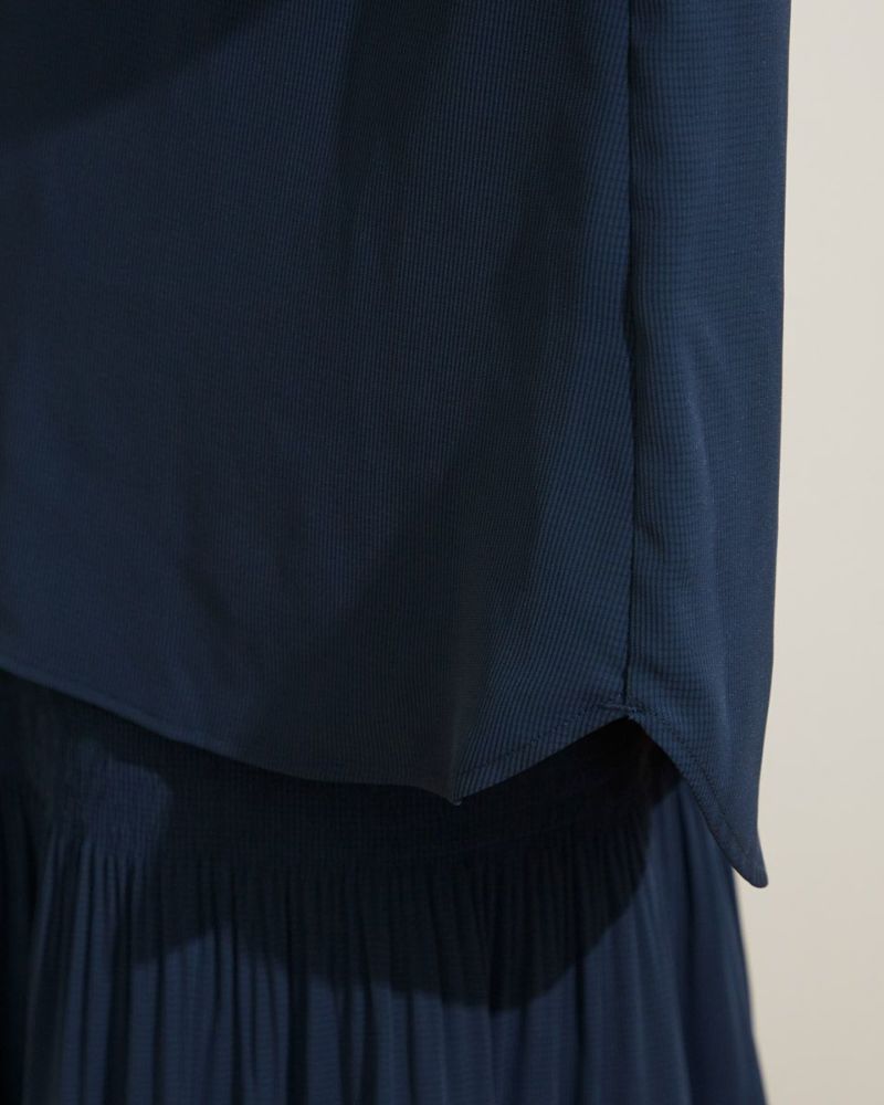 細かい格子の地柄が全体に広がるマットな質感の素材は、ほのかに透けを感じますが弾力があり、サラッとした肌離れが特徴。しなやかな落ち感もあり、強張りがない為、ジャケットやカーディガンの重ね着もスムーズです。首に沿う襟ぐりは肌の露出が抑えられ、揺れる身頃のフレアが上品なためコサージュなどを添え、同素材の468Q2750スカートとセットアップでセレモニーでの着用もおすすめです。華やかでクラス感のアップする468Q2151ツイードジャケットとのコーディネートも素敵です。アイボリーにはは1mmほどのドットをプリント。フェミニンでキレイ見えするのでオフィスコーディネートにも便利!