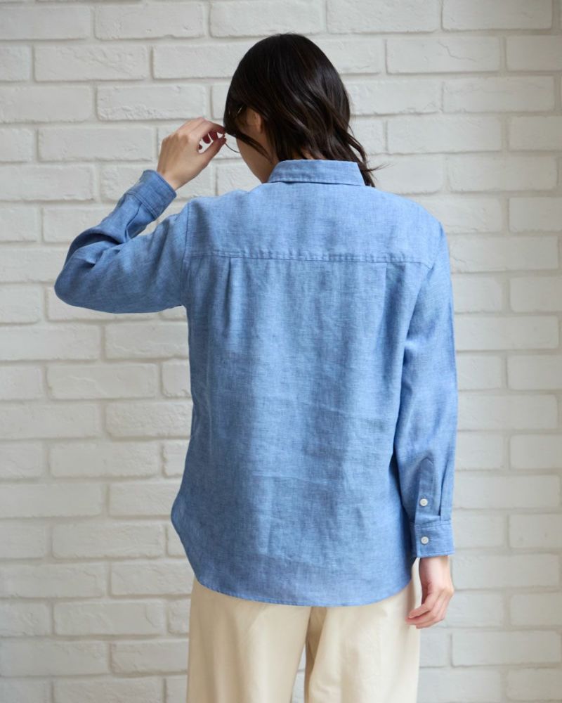 上質なフレンチリネンで仕立てた、イージーケアのシャツ。リネンならではの清涼感とナチュラルな風合いが魅力です。シワになりにくく、アイロンなしでも自然なニュアンスを楽しめるので、日常使いはもちろん旅先でも重宝します。ベーシックなサイズ感はトレンドに左右されず長く愛用できる一着。羽織りとしても、一枚着としても、様々な着こなしに対応してくれるので、スタイリングの強い味方に!メンズと同素材で展開しているので、リンクコーディネートも楽しめます。優しいナチュラルな色合いもおすすめしたいポイントです。