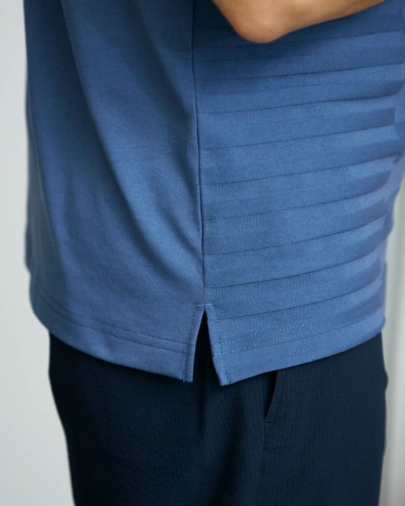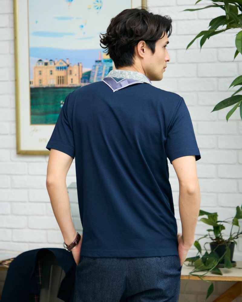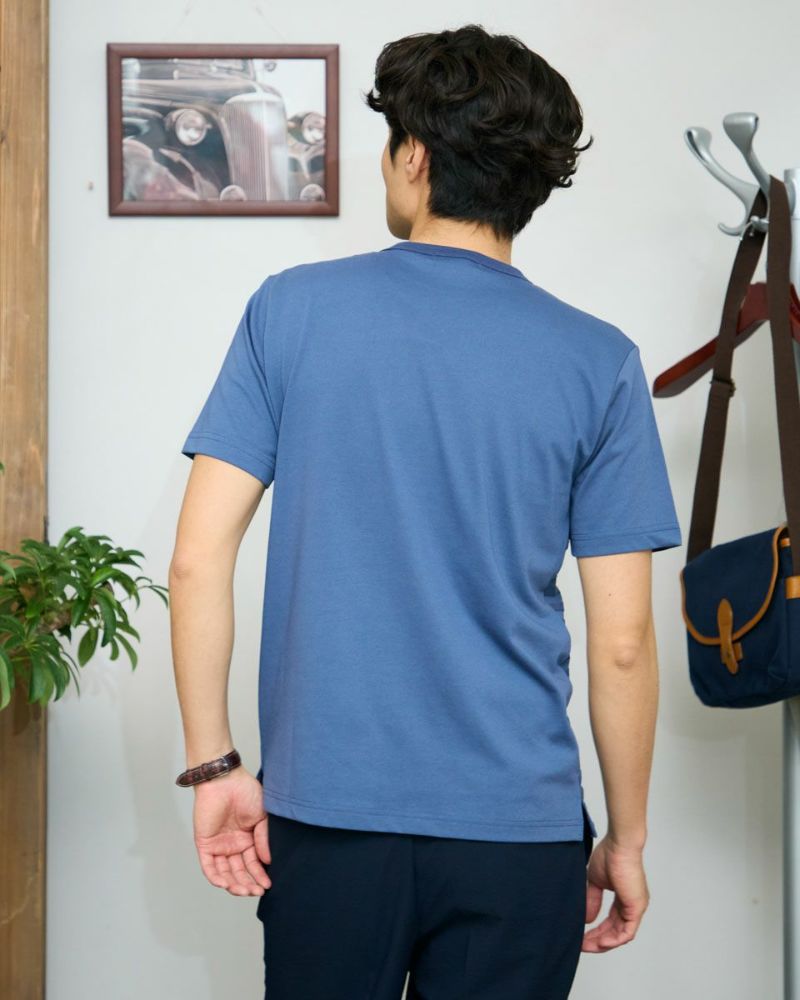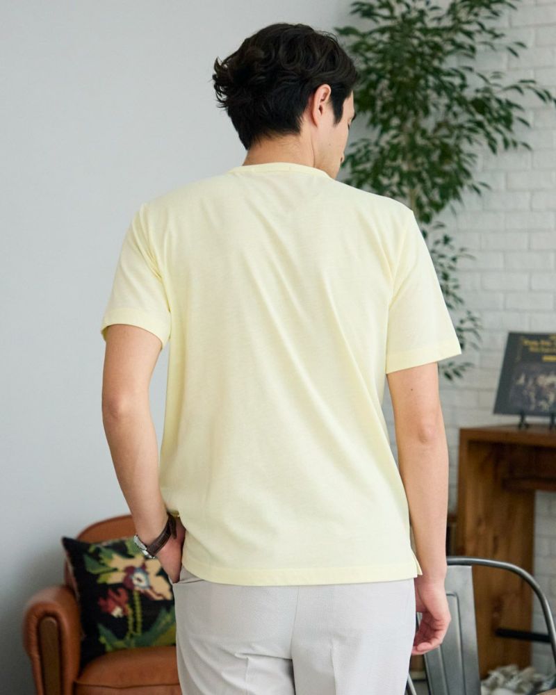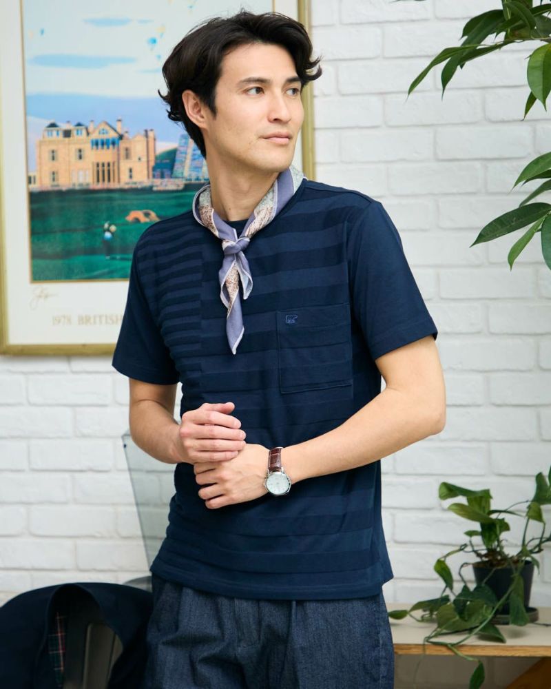 表情のある無地柄のクルーネックTシャツです。凹凸感のあるリンクスボーダーをピッチを変え切り替えました。無地柄なのでインナーとして着合わせしやすい1枚です。 モデル身長: 180 cm 着用サイズ: L サイズ Golden Bear Men's カットソー (Men's) 【着用アイテム】314R2770 デニムスラックス 314R3704 超ストレッチパンツ