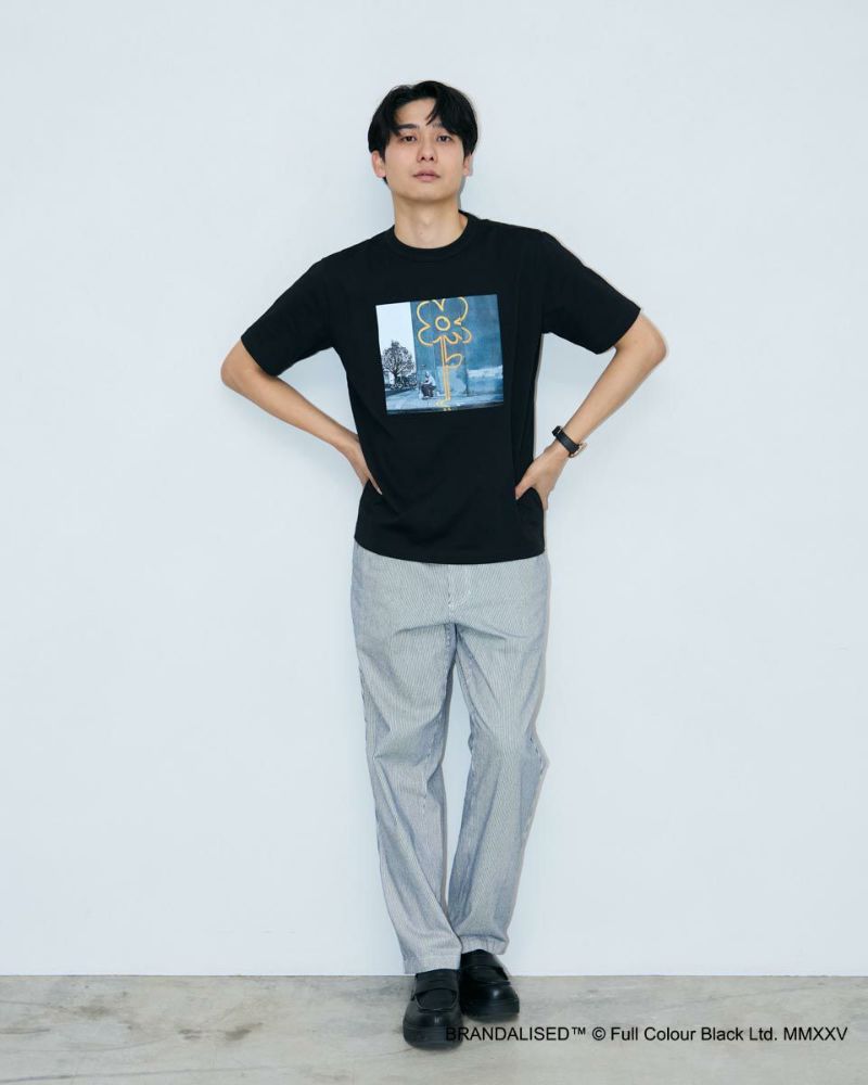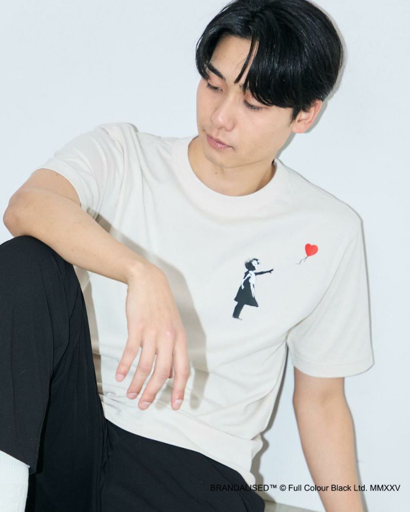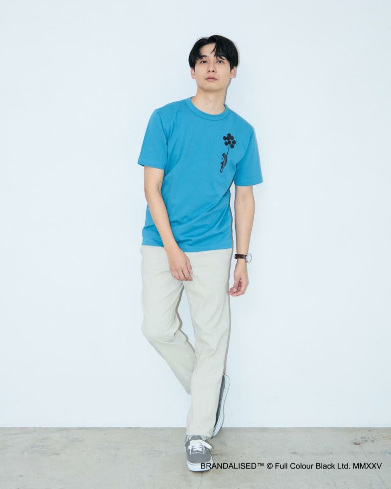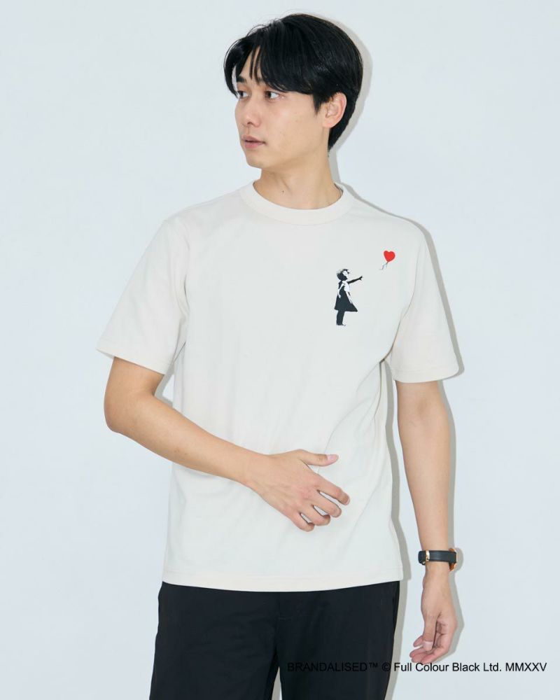 『BRANDALISED』 イギリスの Full Colour Black 社によるグラフィティプロジェクト。 覆面アーティスト・バンクシー (Banksy) のグラフィティ写真を使用したアイテムやブランドコラボレーションを展開。 BRANDALISEDとのコラボレーションによる バンクシーのグラフィティ写真を使用したTシャツです。 きっと多くの人がどこかで一度は目にしたことのある、バンクシーの代表作『Balloon Girl』 『Yellow Lines』 『Flower Bomber』 『Jerusalem Balloon Girl』をセレクト。 素材は、接触冷感・透け防止・吸水速乾性に優れた滑らかな肌触りのプレーティング天竺。 襟ぐりは強度のあるフライスを使用し、バインダー始末にすることでヨレにくくしています。 セットインスリーブですが、窮屈にならないシルエットで作りました。 モデル身長: 180 cm 着用サイズ: L サイズ レディースサイズのBRANDALISED Tシャツはこちら BRANDALISEDランチバッグはこちら Golden Bear Men's カットソー (Men's) 家族コーディネートアイテムはこちら 【着用アイテム】314R3730 イージーパンツ 314R2770 デニムスラックス