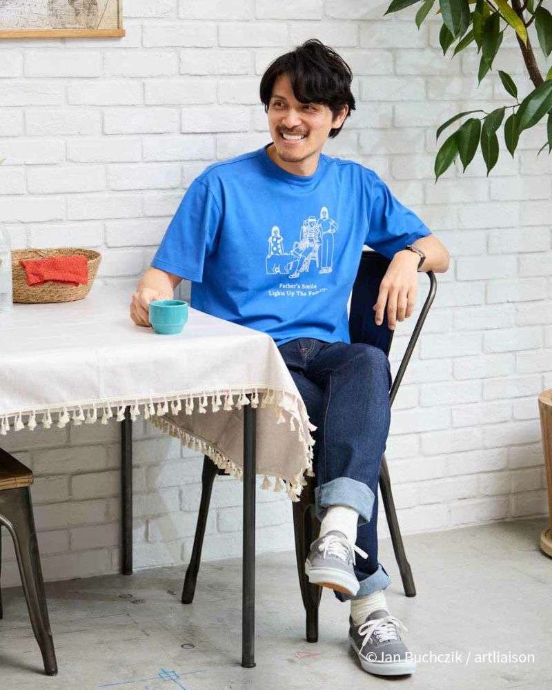 家族の毎日を彩る服を提案するゴールデンベアは、お父さんに日頃の感謝を伝える「父の日」を大切にしています。そんな特別な日を今年は、ヤン・ブハチック氏のイラストとともに盛り上げます。お父さんが主役として描かれたイラストには、お馴染みのクマも家族の一員に。