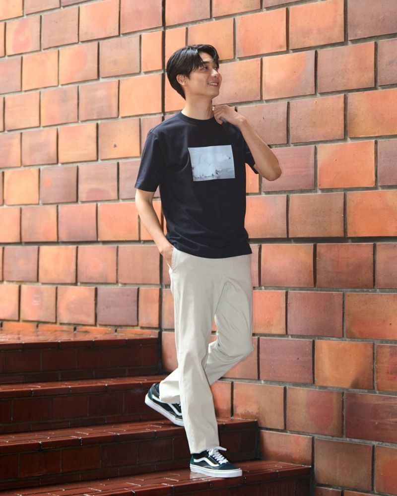 ボディカラーによってプリント位置を変えており、アイボリーはバックプリント、ブラックは正面プリントにしています。