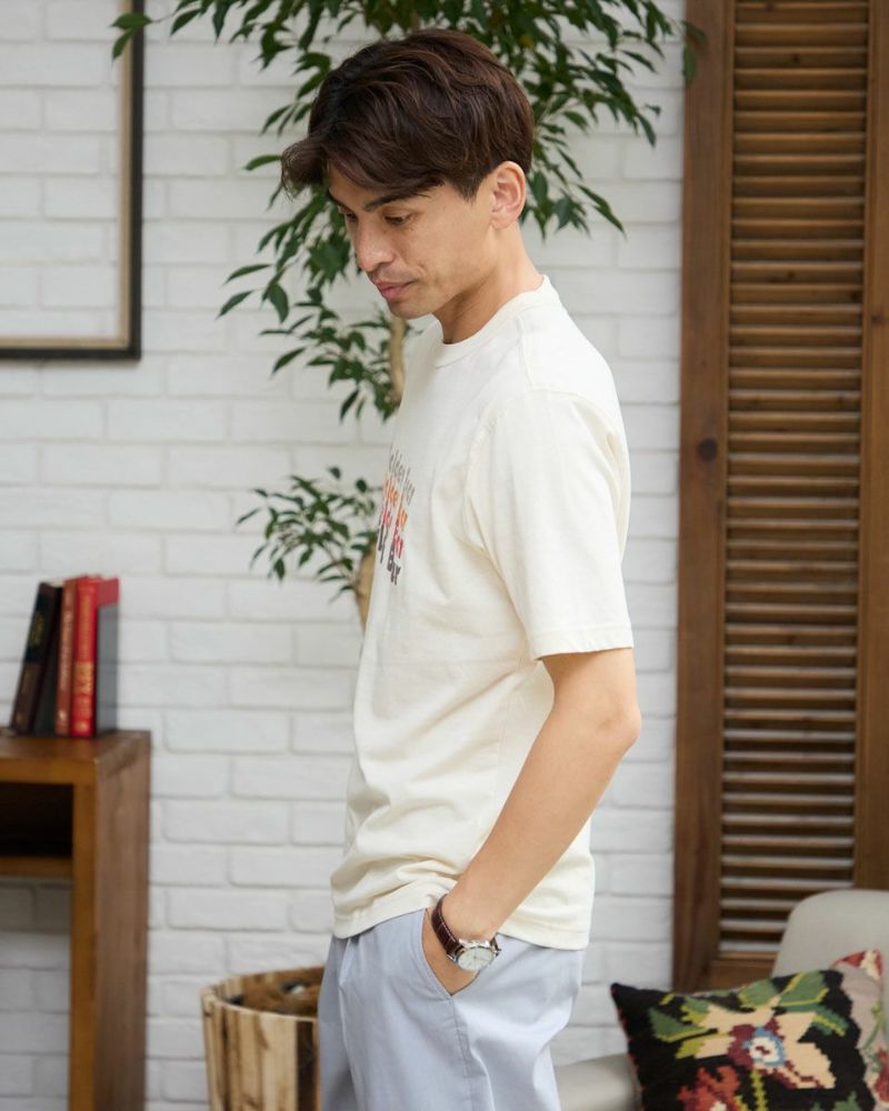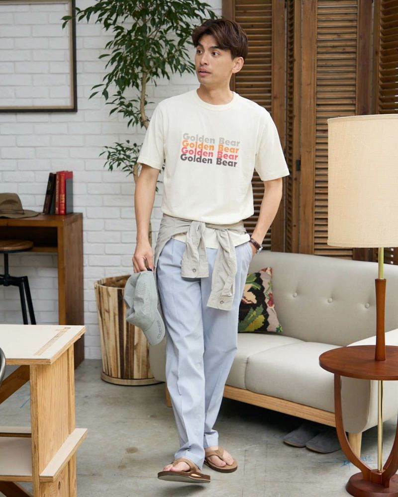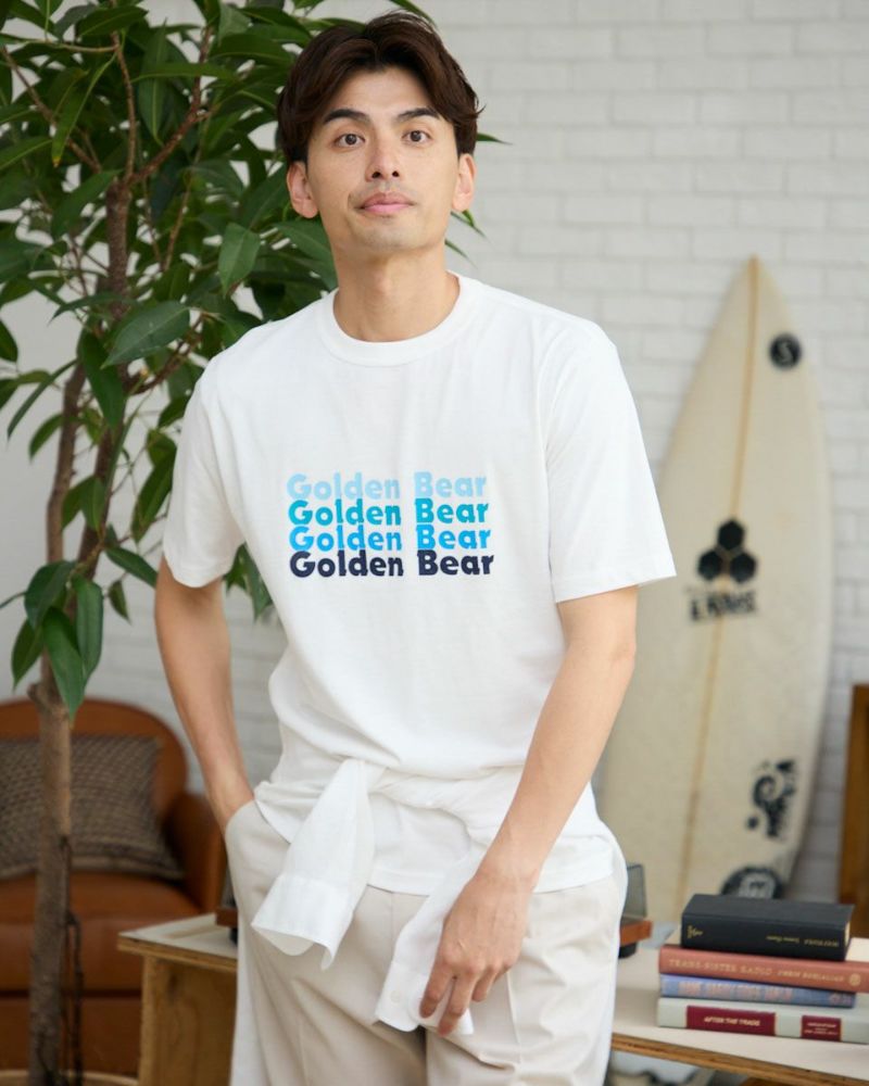 ロゴをグラデーションで表現したプリントTシャツです。環境にも肌にも優しいオーガニックコットン100%素材を使用しています。襟ぐりは身頃同色染で強度のあるフライスを使用、バインダー始末にすることでヨレにくさを実現しました。 モデル身長: 180 cm 着用サイズ: L サイズ Golden Bear Men's カットソー (Men's) キッズサイズはこちら レディースサイズはこちら 家族コーディネートアイテムはこちら