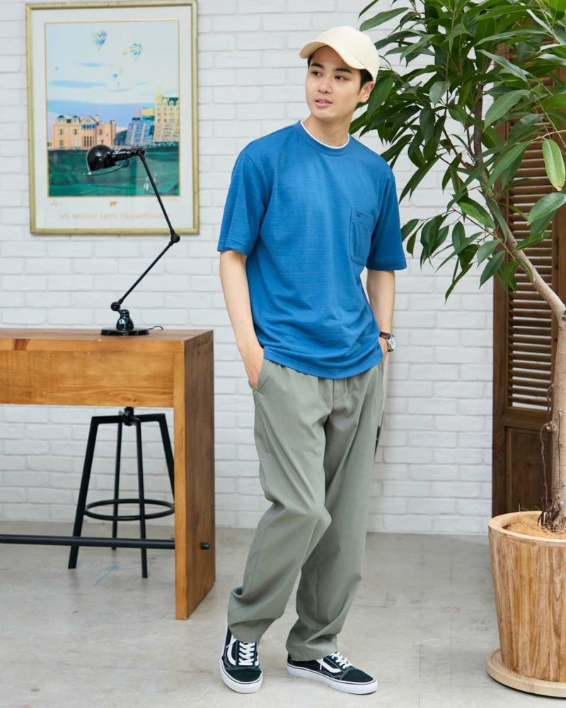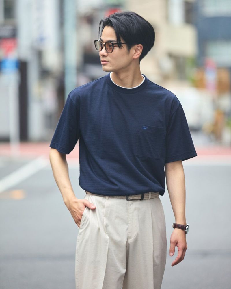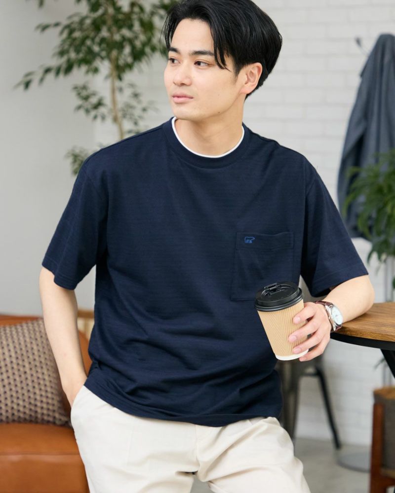 さり気ない同系色ボーダーのクルーネックTシャツです。さらっとした着心地が特徴の鹿の子素材を使用しています。襟のレイヤードがアクセントになり、着回ししやすいTシャツです。 モデル身長: 176 cm 着用サイズ: L サイズ Golden Bear Men's カットソー (Men's) 【着用アイテム】314R3704 超ストレッチパンツ 314R4710 イージーパンツ 314R5701 スラックス 314R6712 ベイカーパンツ