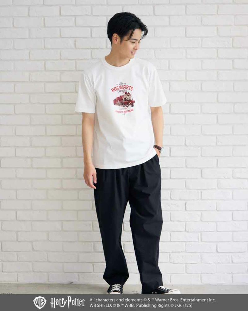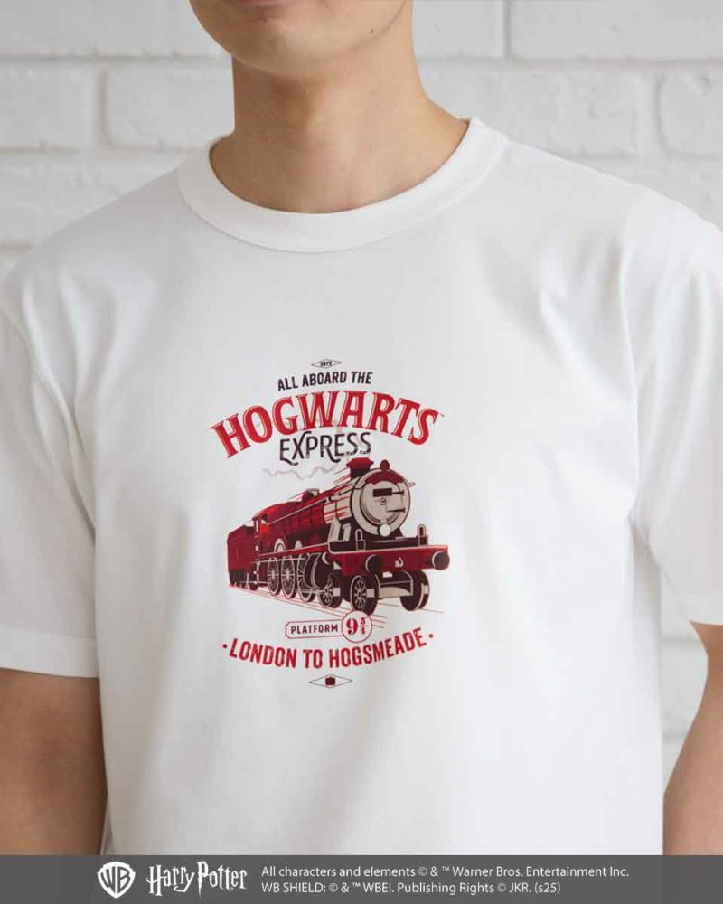 アイボリーのTシャツには、ホグワーツ特急や、9と3/4番線のグラフィックをプリントし、レトロポップな雰囲気に。