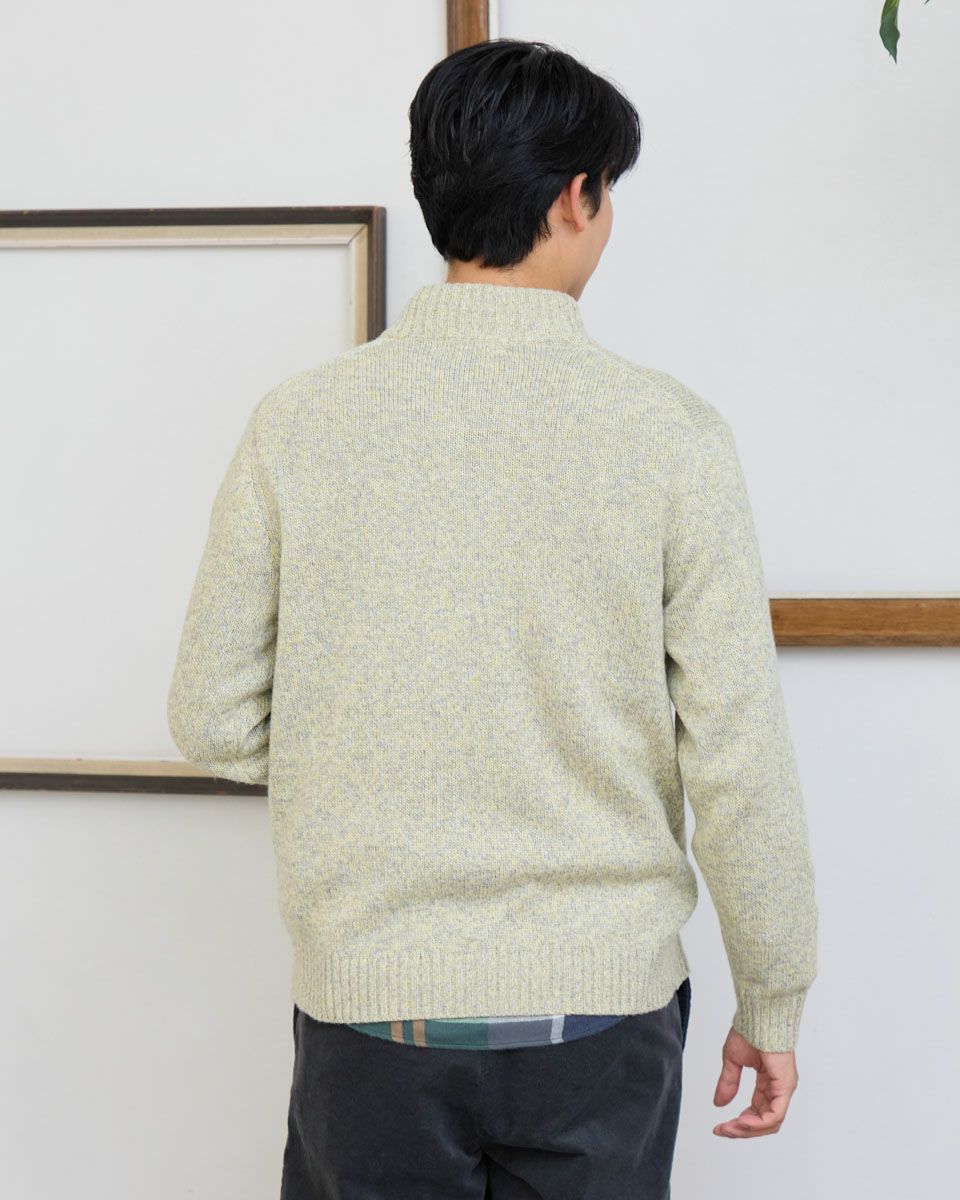 ロゴ刺繍を施したハーフZIPニットです。三色の異なる色の糸を撚り合わせた三ツ杢で5ゲージの天竺に編みたてました。ご家庭での手洗い洗濯が可能です。ZIPを開ければインナーを見せたレイヤードスタイルや、抜け感のあるキーネック風の着こなしが楽しめます。 モデル身長: 180 cm 着用サイズ: L サイズ 同デザイン通常サイズはこちら Golden Bear KING SIZE(MEN 大きいサイズ) ニット (MEN) 【着用アイテム】 314RE220 チェックシャツ 314RE721 ストレッチコーデュロイパンツ