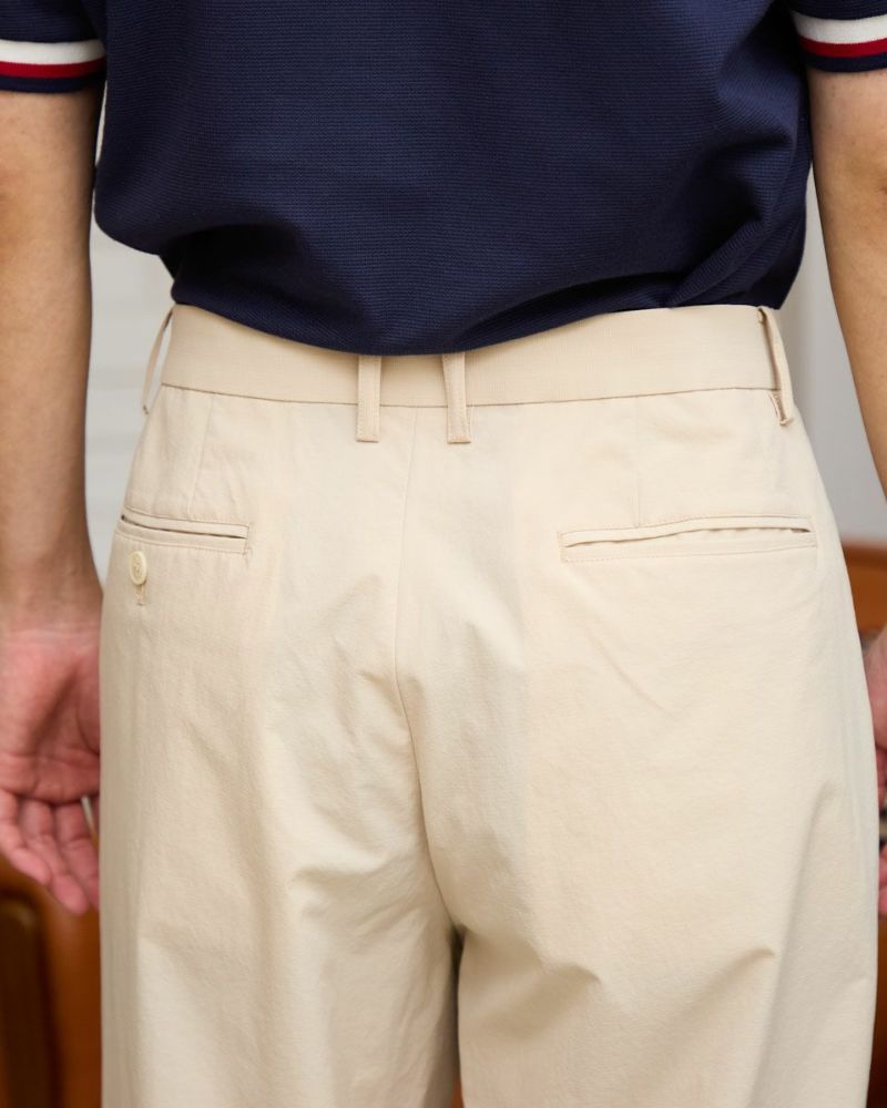ツータックのワイドイージーパンツです。吸水速乾性に優れたミニリップストップ生地を使用しています。腰やお尻、太もも部分にゆとりがあり、膝下から裾にかけてやや細くなるシルエットです。 モデル身長: 176 cm 着用サイズ: L サイズ Golden Bear Men's ボトムス (Men's) 【着用アイテム】314R6526 ラインポロシャツ 314R7303 ストライプ半袖シャツ 314R7541 プリントTシャツ