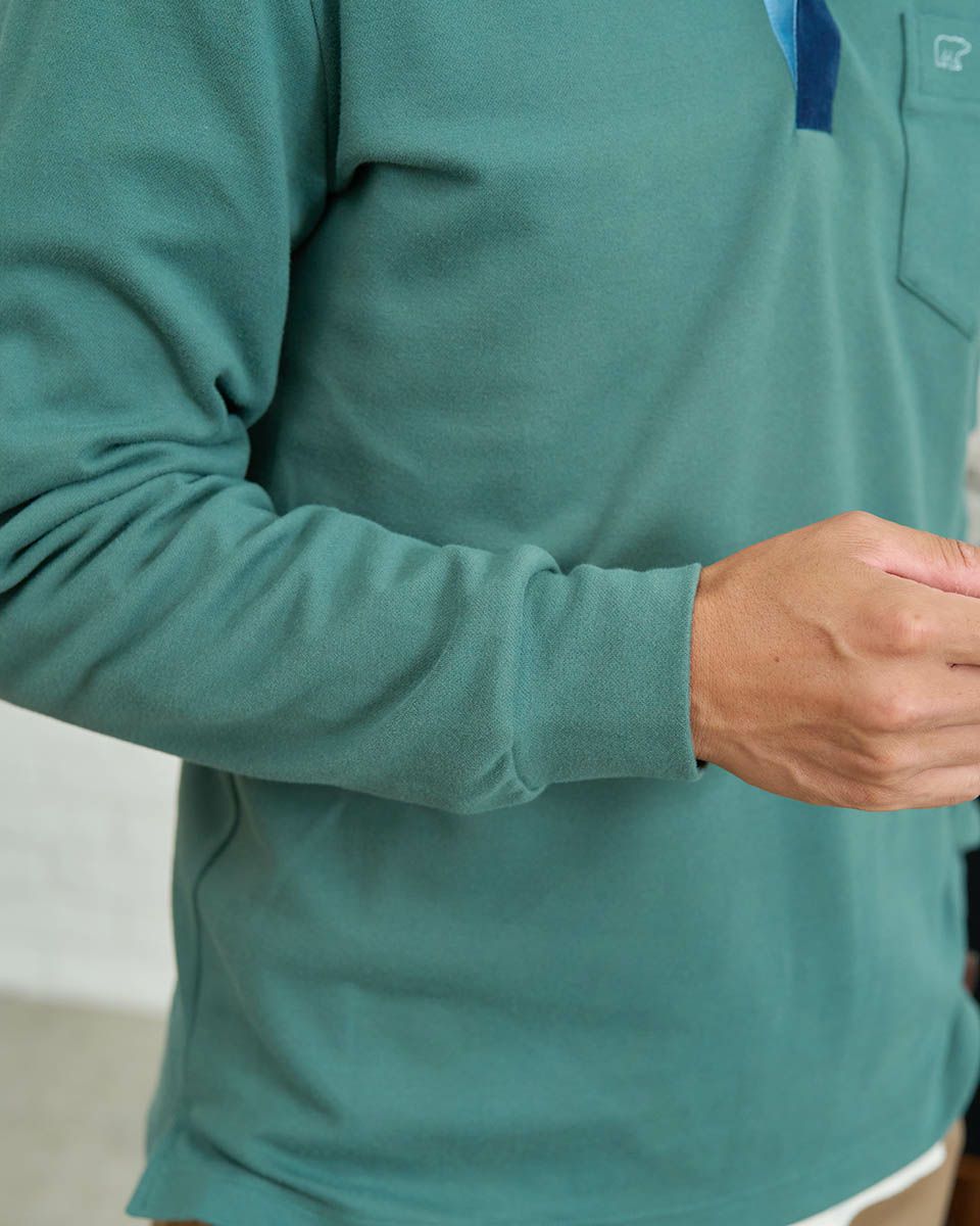 コーデュロイ布帛を使用した長袖ポロシャツです。表面に微起毛を施したカノコ素材を使用しています。柔らかく、優しい肌触りが特徴です。カジュアルながらもきれいに着こなせるポロシャツです。 モデル身長: 180 cm 着用サイズ: L サイズ Golden Bear MEN カットソー (MEN) 【着用アイテム】314RD112 ドライビングジャケット 314RD210 フランネルシャツ 315RC704 イージーパンツ 314RD711 超ストレッチ発熱素材パンツ