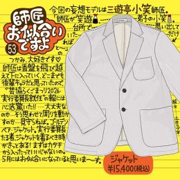 『師匠お似合いですよ vol.53』 落語情報誌『東京かわら版』で掲載中の『師匠お似合いですよ』。 第五十三回目の妄想モデルは、三遊亭小笑師匠! 師匠にはジャケ...