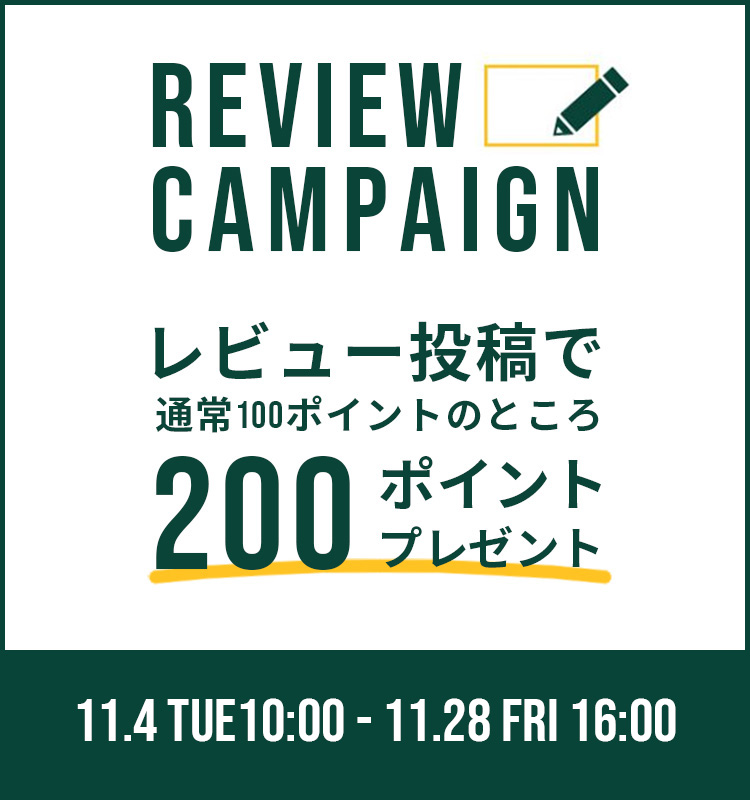 レビュー投稿いただくと通常100ポイントのプレゼントが、期間中は200ポイントプレゼント!