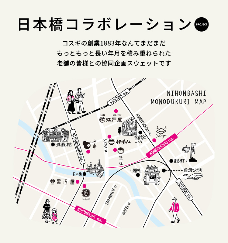 日本橋の老舗店舗とコラボレーションしたスウェットを販売!