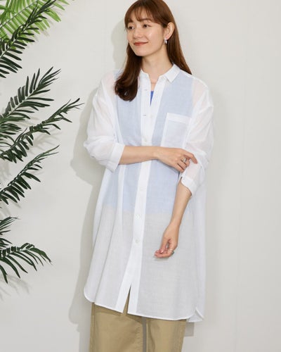 綿100%でさらりとした着心地です 冷房時や日除けの羽織りとしてとてもいいです ロング丈のところも気に入りました