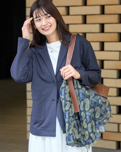 春先、梅雨時に羽織れるジャケット。 しっかりした生地ですが、硬くありません。 カジュアルな大人ジャケットです。 ペラペラしてなく、高級感があります。