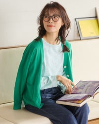 気軽に羽織れるカジュアルなカーディガンなので 普段着に重宝しそうです。 -