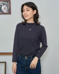 今の季節にぴったりの秋色キャメルの長袖Tシャツで、とても気に入っています。もう少し寒くなれば、パーカーなどを羽織ると春まで着られそうで重宝しそうです。