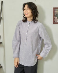 大人可愛いシャツです。お店でグレーを購入して気に入り、もしかしたら色違いもあるのかなとネットで見たらネイビーが発売されていたので即購入しました。程良い生地で、夏以外スリーシーズン活躍してくれそうです。