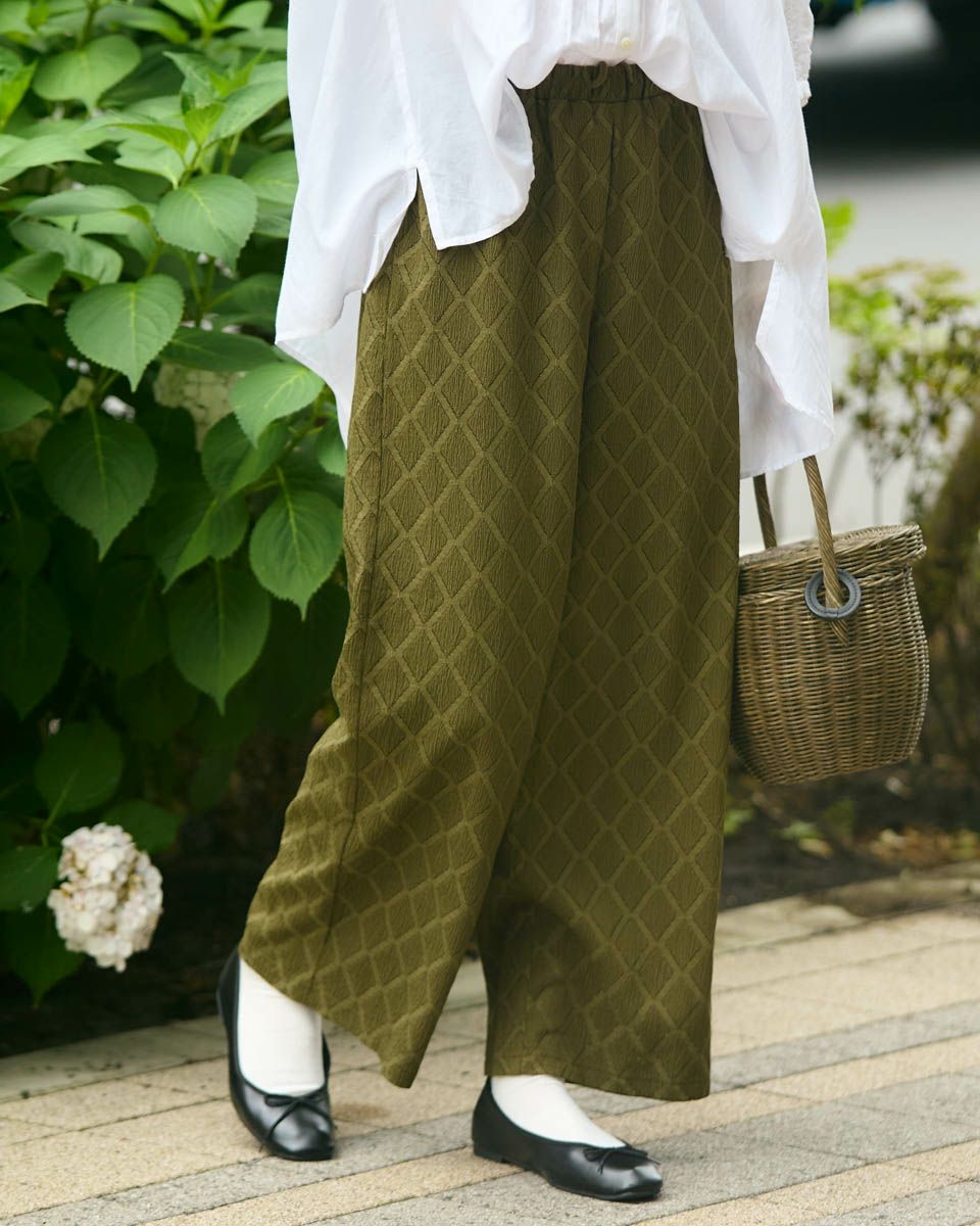 ウエストゴムで軽い感じで着用できます。 シワにもなりにくいです。 -