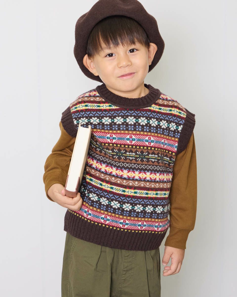 色々なモチーフが連続するフェアアイル柄が とてもかわいらしいですよね。 孫に2色買いしました。 どんな色にもレイヤードしやすそうです。