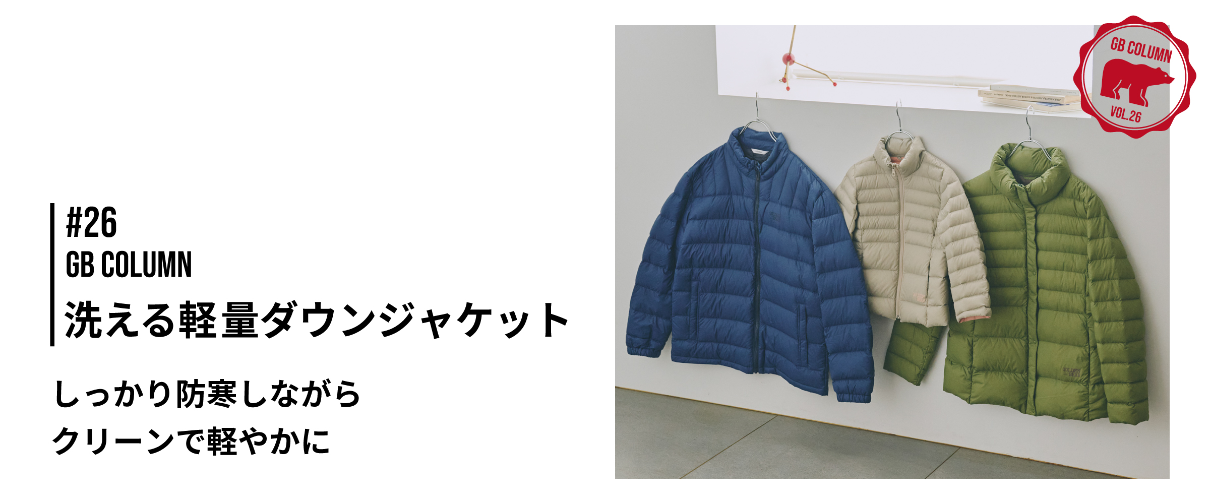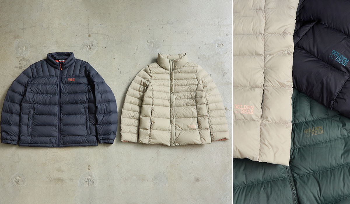 GBの洗える軽量ダウンジャケットは、軽さ、暖かさ、機能性。そしてデザイン性を兼ね備えた、ゴールデンベアおすすめのアウターです。