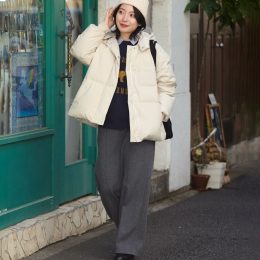Women / 162cm 【着用サイズ】 トップス:Mサイズ ・ パンツ:Sサイズ ふんわりとしたベージュのダウンが主役の、やさしく温かみのある冬コーデ。ニッ...