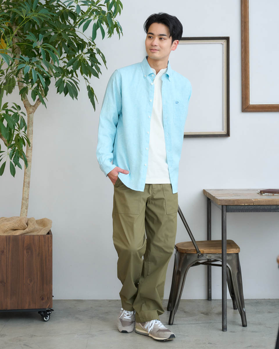 涼しげなフレンチリネンシャツが主役の休日のお出かけスタイル。